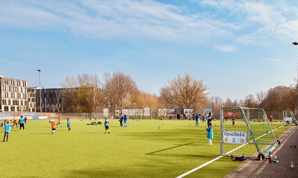 Über 150 fußballbegeisterte Erst- und Zweitklässler*innen verwandelten den Platz in ein echtes Stadion. Wir durften Mannschaften von sieben Grundschulen bei uns begrüßen: