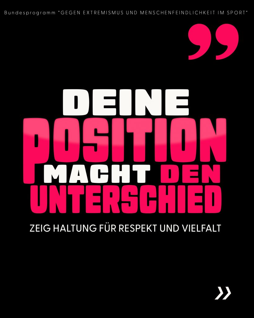 Die Kampagne wird gefördert im Rahmen des Bundesprogramms gegen Extremismus und Menschenfeindlichkeit im Sport vom Bundeskanzleramt aufgrund eines Beschlusses des Deutschen Bundestags.