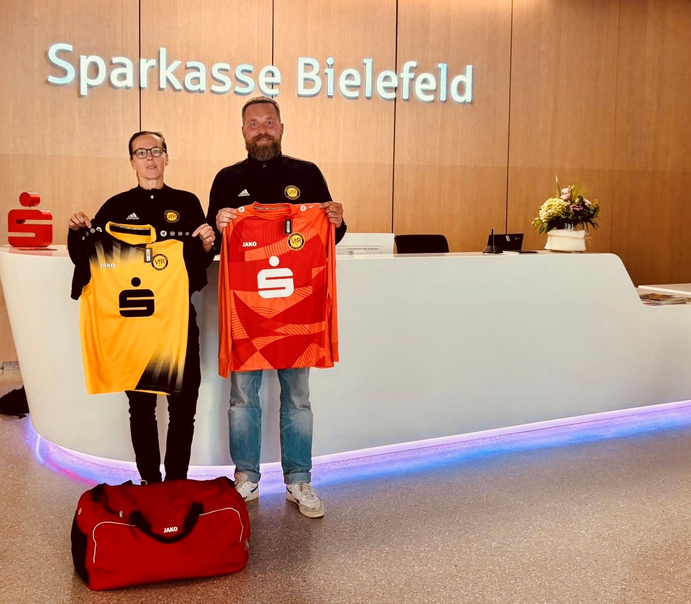 Bei der feierlichen Übergabe am Mittwoch, den 24. September 2025, in der Sparkasse Bielefeld waren Matthias und Layana vor Ort, um die Trikots stellvertretend für den gesamten Verein und unsere Jugendmannschaft entgegenzunehmen.
