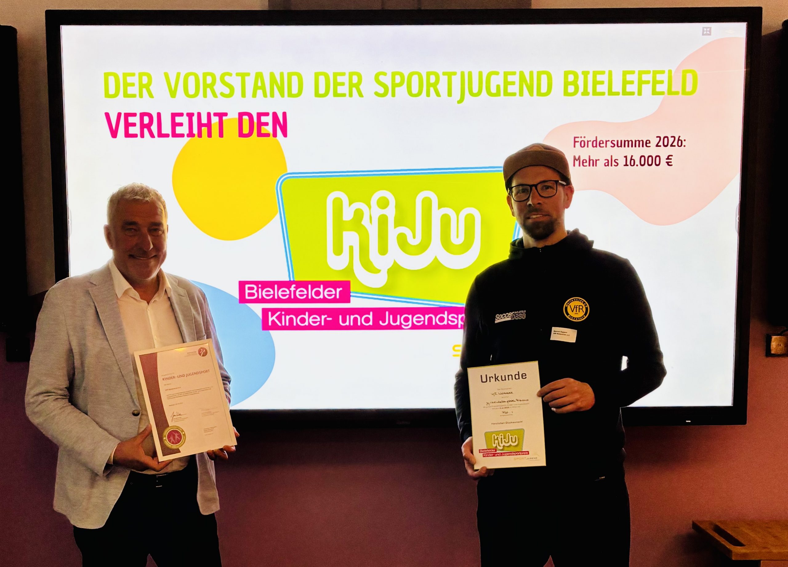 Am vergangenen Dienstag, den 21. April 2026, vertraten unser 1. Vorsitzender Jörg Höfel und der 2. Vorsitzende Marcel Eggert den VfR Wellensiek beim diesjährigen Jugendtag der Sportjugend Bielefeld. Die Veranstaltung, die in der Wissenswerkstadt stattfand, bot einen feierlichen Rahmen für wegweisende Auszeichnungen im Bielefelder Kinder- und Jugendsport.