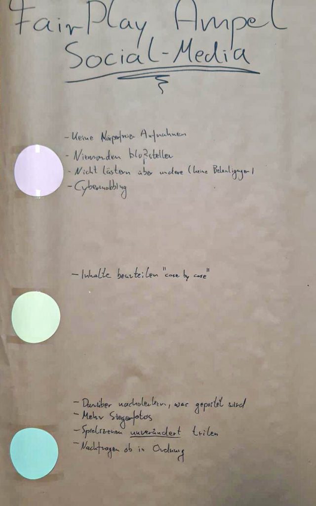 Besonderen Wert legten wir auf Beteiligung, Austausch und Reflexion unter den Jugendlichen und auch den Trainern. Mit praxisnahen und aktivierenden Methoden konnten die Jugendlichen ihre eigenen Perspektiven einbringen und kritisch hinterfragen. Die intensive Auseinandersetzung führte zur Vereinbarung verbindlicher Regeln für das digitale Miteinander im Team.